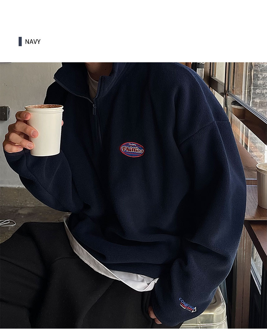 採用了半拉鍊高領的設計,由柔軟且舒適的聚酯纖維製成